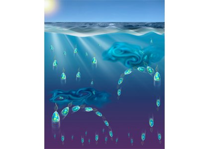 A recent study in Global Biogeochemical Cycles used large-scale in situ mesocosms to explore how the ecological interplay within plankton communities affects the downward flux of organic material. Organic biomass tends to sink faster when produced by smaller organisms because the sinking material they generate forms dense aggregates. Conversely, larger organisms produce relatively porous particles that sink more slowly.
